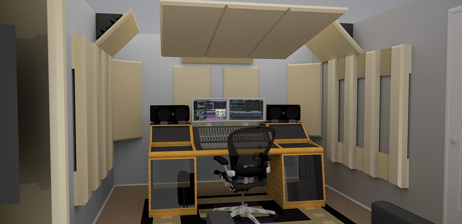 • CTD Rear Wall ProPanel™: This extra-thick 2’ x 4’ x 4” panel is installed on the rear wall to improve low-frequency absorption throughout the room and to control front-to-back axial mode anomalies that would otherwise degrade accuracy at the mix position.